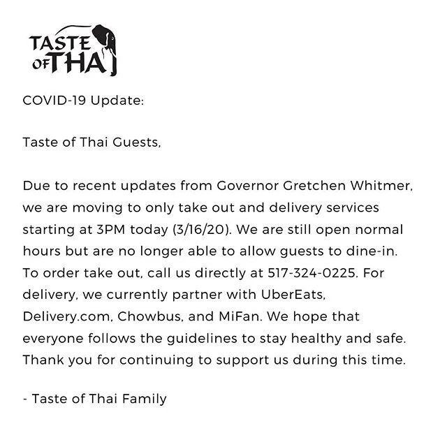 Since 1999, Taste of Thai has had the pleasure of serving authentic Thai food to Lansing and East Lansing. We would like to thank our loyal customers from our old location for their continued support, and our new customers for giving us the opportunity to serve them. Thank you for making all these years possible!